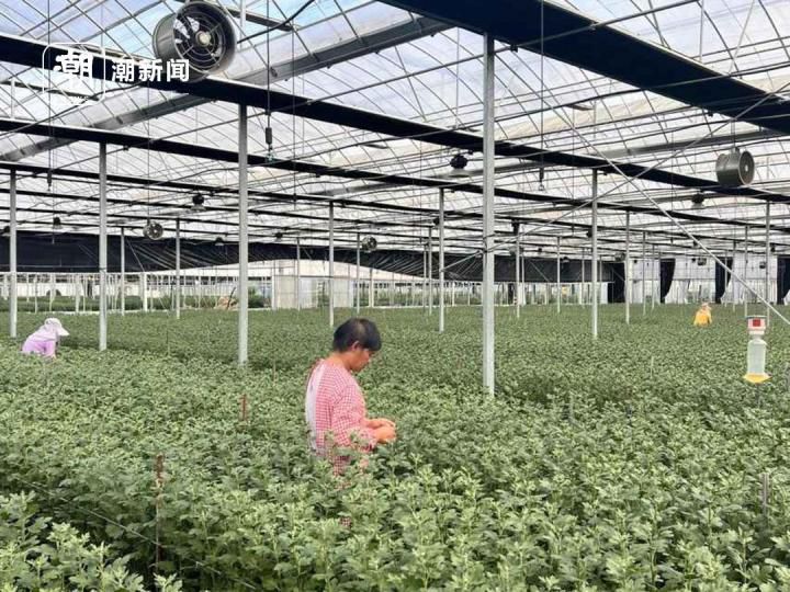距离绍诸高速公路出入口仅500米,浙江海丰花卉有限公司千亩菊园里的一座座现代化菊花种植大棚格外显眼,当地村民正在棚内劳作。