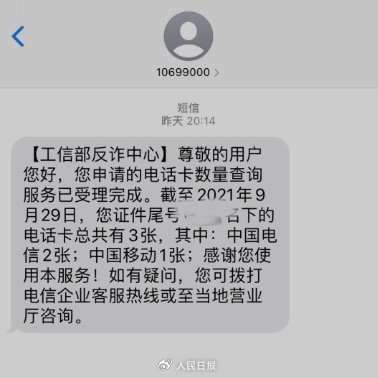 你名下的三家基础电信企业、移动转售企业的全国移动电话卡数量