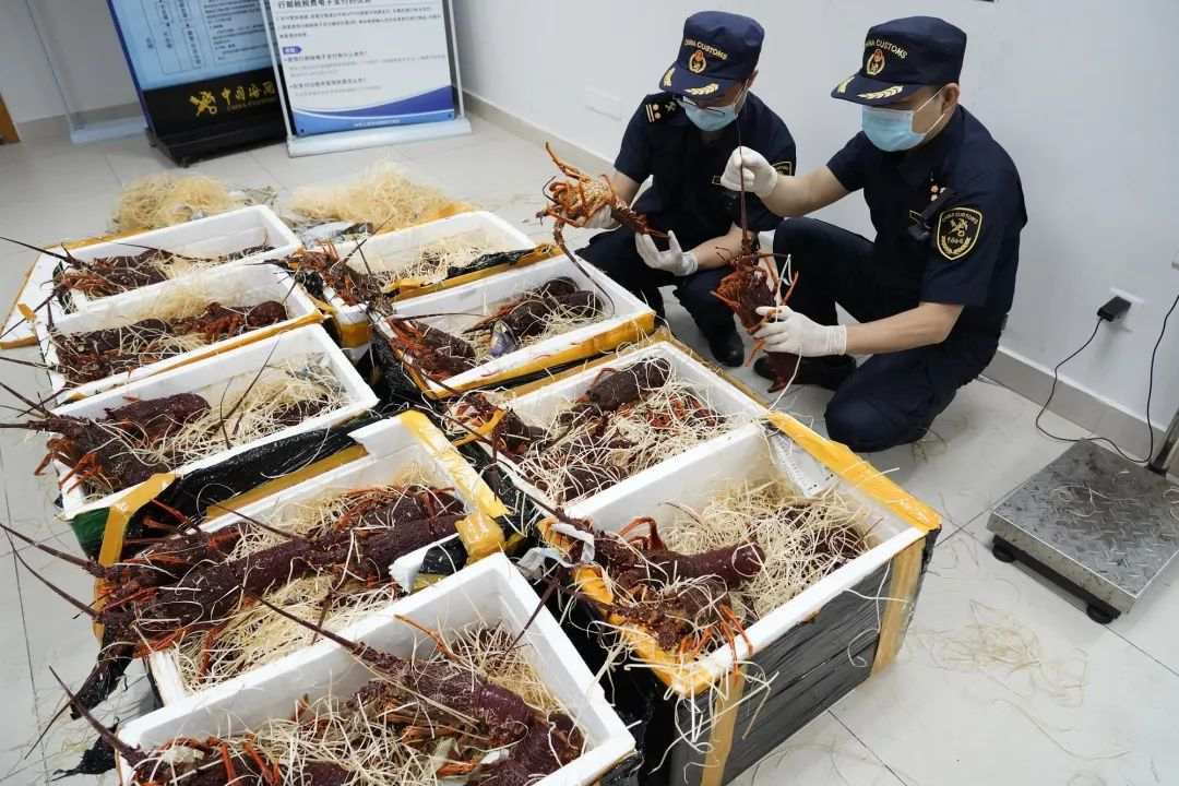 此非孤例,前不久,厦门机场海关对入境航班行李进行监管时,发现一名旅客携带的密封泡沫箱X光机图像异常,箱内疑似装有活体海鲜。经开箱检查,关员发现箱内有6只活蹦乱跳的鲜活大龙虾,净重5.8千克。随后,该关依法将该批龙虾扣留做送检处理。