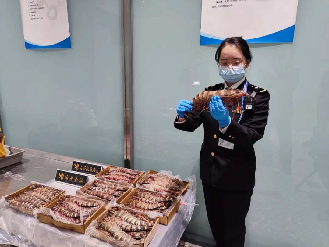 大兴机场海关查获入境旅客违规携带的冰鲜虾