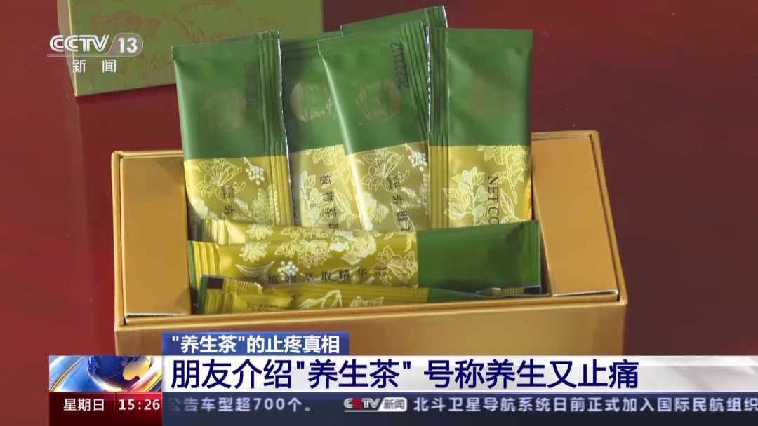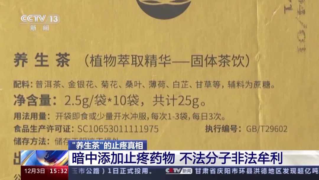 华测检测认证集团有限公司工程师 苗子伟:检测过程中发现有西药成分检出,检出的成分叫双氯芬酸钠。从目前来看,这款茶叶针对身体的头痛、牙痛、腰痛等有一定疗效,但并不是茶叶有这种疗效,这种疗效是里面非法添加的药物在起作用。
