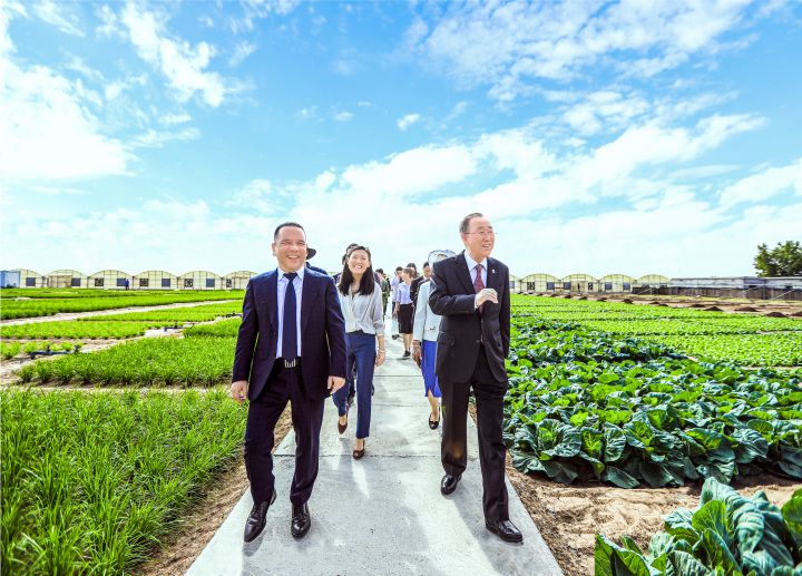 2019年,前联合国秘书长潘基文到温超农场参观。图源受访者