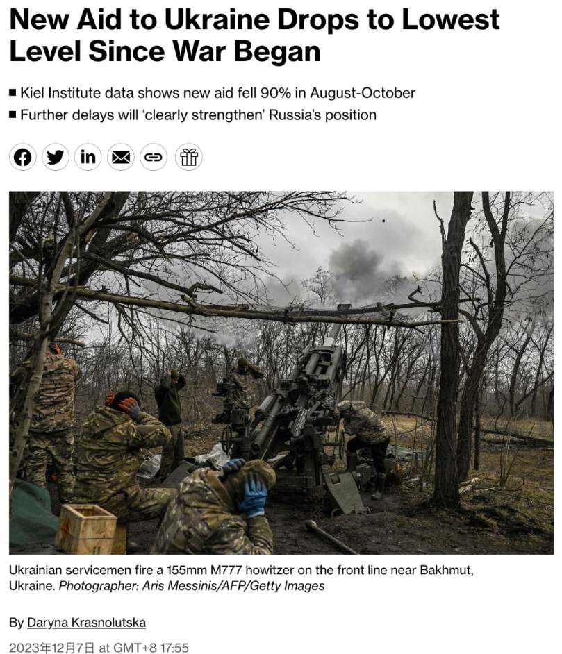 据彭博社12月7日报道,德国基尔世界经济研究所当天发布的数据显示,西方国家大幅缩减了对乌克兰的援助承诺,已经降至俄乌冲突开始以来的最低水平。