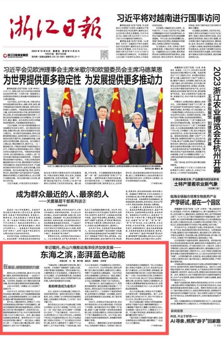 2004年9月,时任浙江省委书记习近平同志来到六横岛调研,从产业发展到基础设施建设,从总体思路到具体路径,为小岛倾心谋划,勉励六横“推动海洋经济加快发展”。
