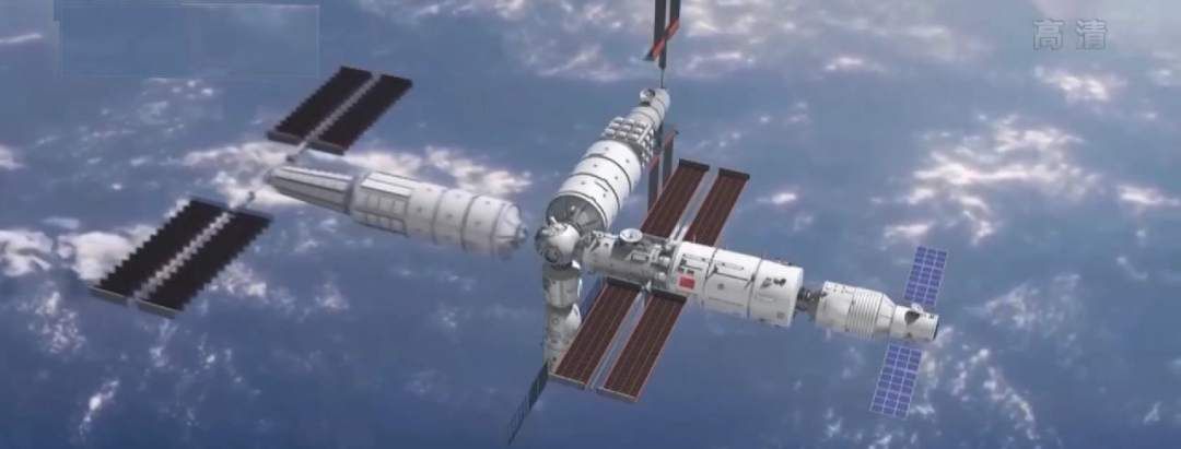 问天实验舱发射之初,对接在天和核心舱节点舱正前方接口,形成了“一”字构型。10月31日,梦天实验舱发射,次日成功对接于天和核心舱前向端口。
