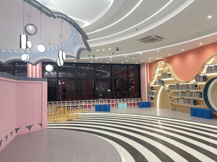 粉红、粉蓝相间的彩色空间,如果不是周围环绕着书架,它看起来更像是个儿童乐园。更有趣的是,在这里,轻声共读成了被允许甚至提倡的事。
