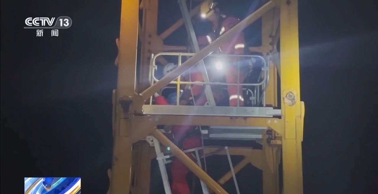 情况紧急,4名消防救援人员携带安全绳索、腰带等救援防护装备,做好防护工作后,爬上塔吊进行营救。由于凌晨气温寒冷,室外温度仅3摄氏度,且高空风速较大,给救援带来了一定困难。由于塔吊梯笼内救援空间狭窄,为最大限度保证被困人员安全,救援人员从塔内爬梯处一上一下采取托举和拖拽的方式,护送被困人员下塔。