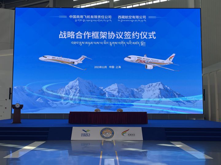 12月17日,西藏航空与中国商飞在上海签署战略合作框架协议,就共同研制国产大飞机高原机型开展全方位战略合作,西藏自治区副主席韦秀长,中国商飞党委书记、董事长贺东风,西藏航空党委书记、董事长魏博平出席。