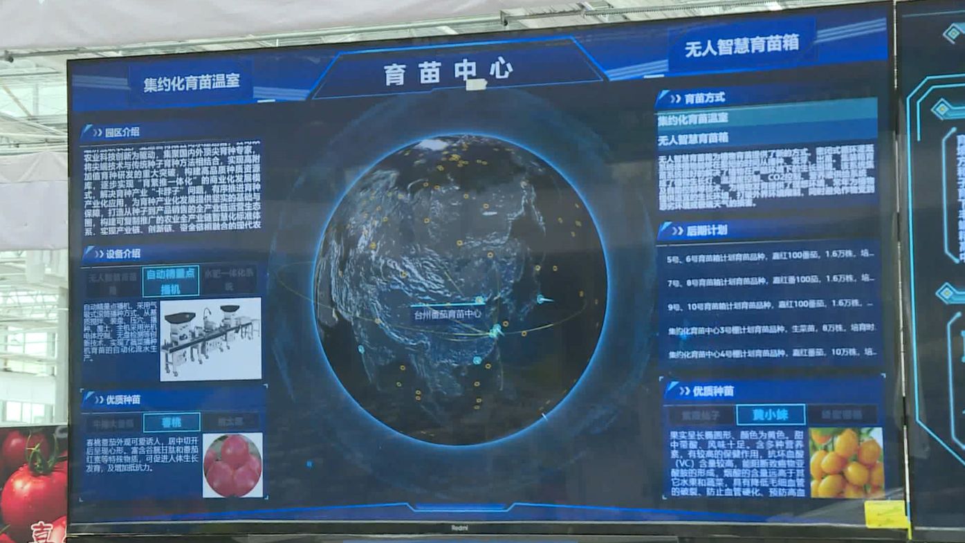 台州道济互联农业产业运营有限公司基地负责人詹立彬说:“我们园区可以通过手机,去实时监控苗的长势、光照、二氧化碳和湿度浓度,监控苗的生长环境。”