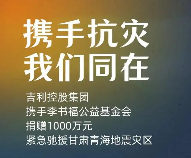 12月20日,吉利控股集团携手李书福公益基金会向甘肃省、青海省红十字会捐款1000万元用于甘肃、青海地震灾区采购应急救灾物资、支持灾后重建工作,并将持续关注救援情况,继续为受灾民众抗灾、重建、安然过冬尽献绵薄之力。