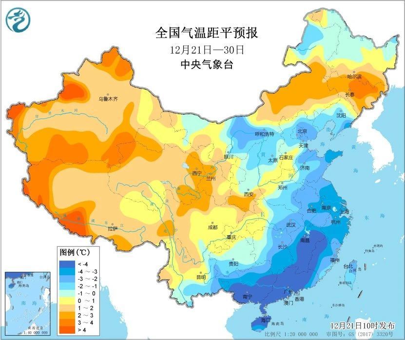 中央气象台预计,12月下旬,除了我国西部地区气温偏高外,我国中东部大部地区平均气温较常年同期偏低1~3℃。
