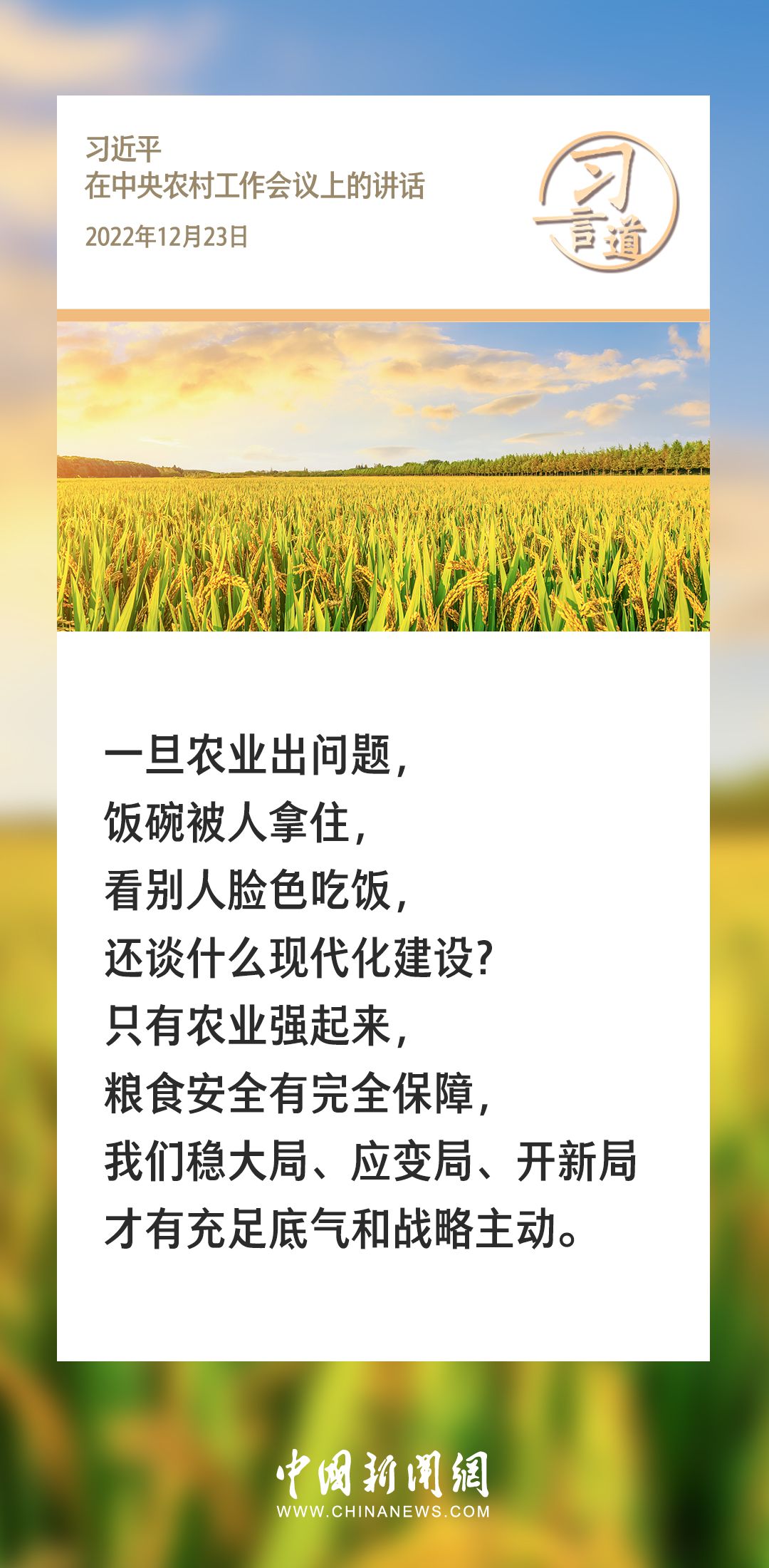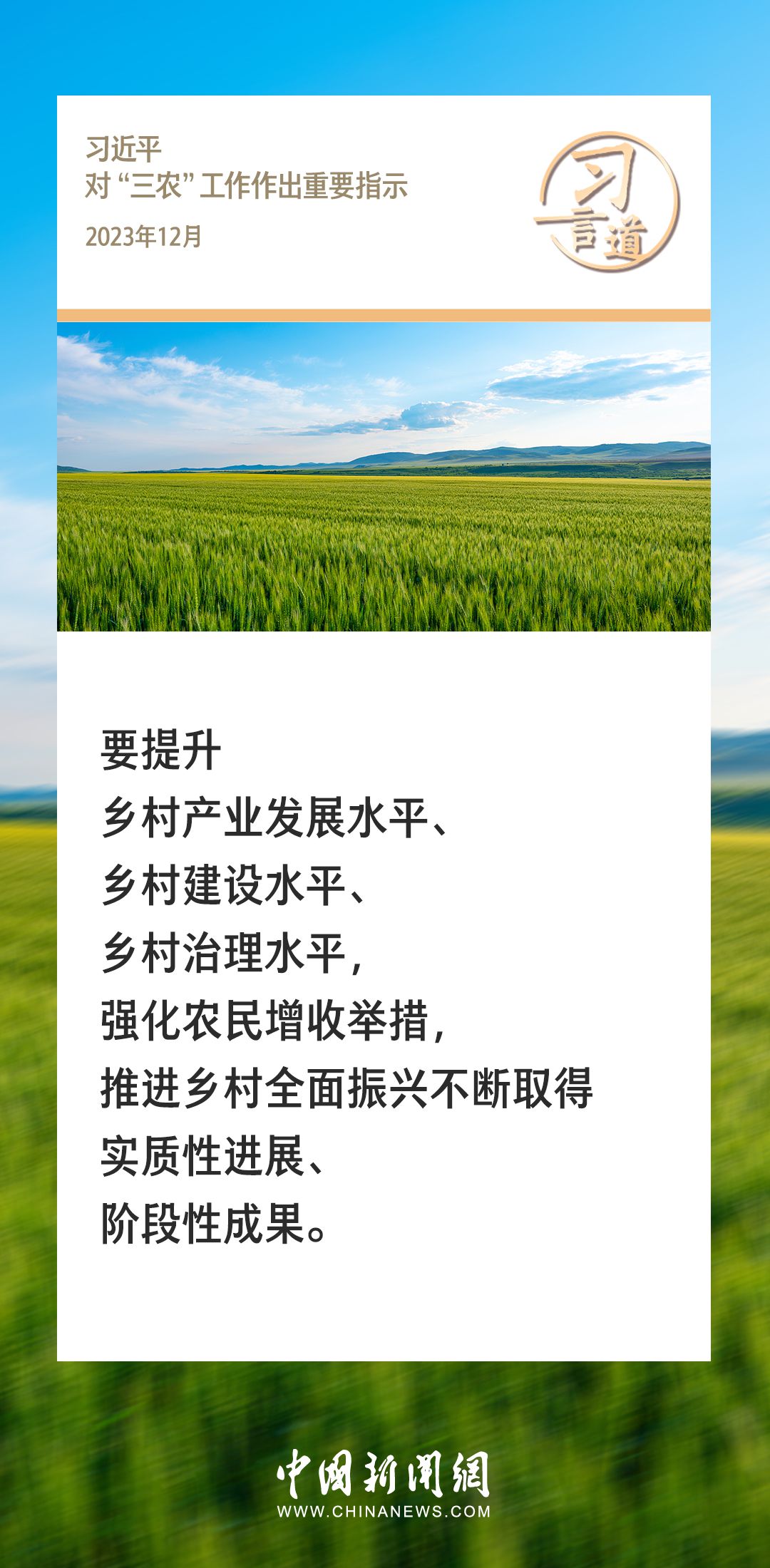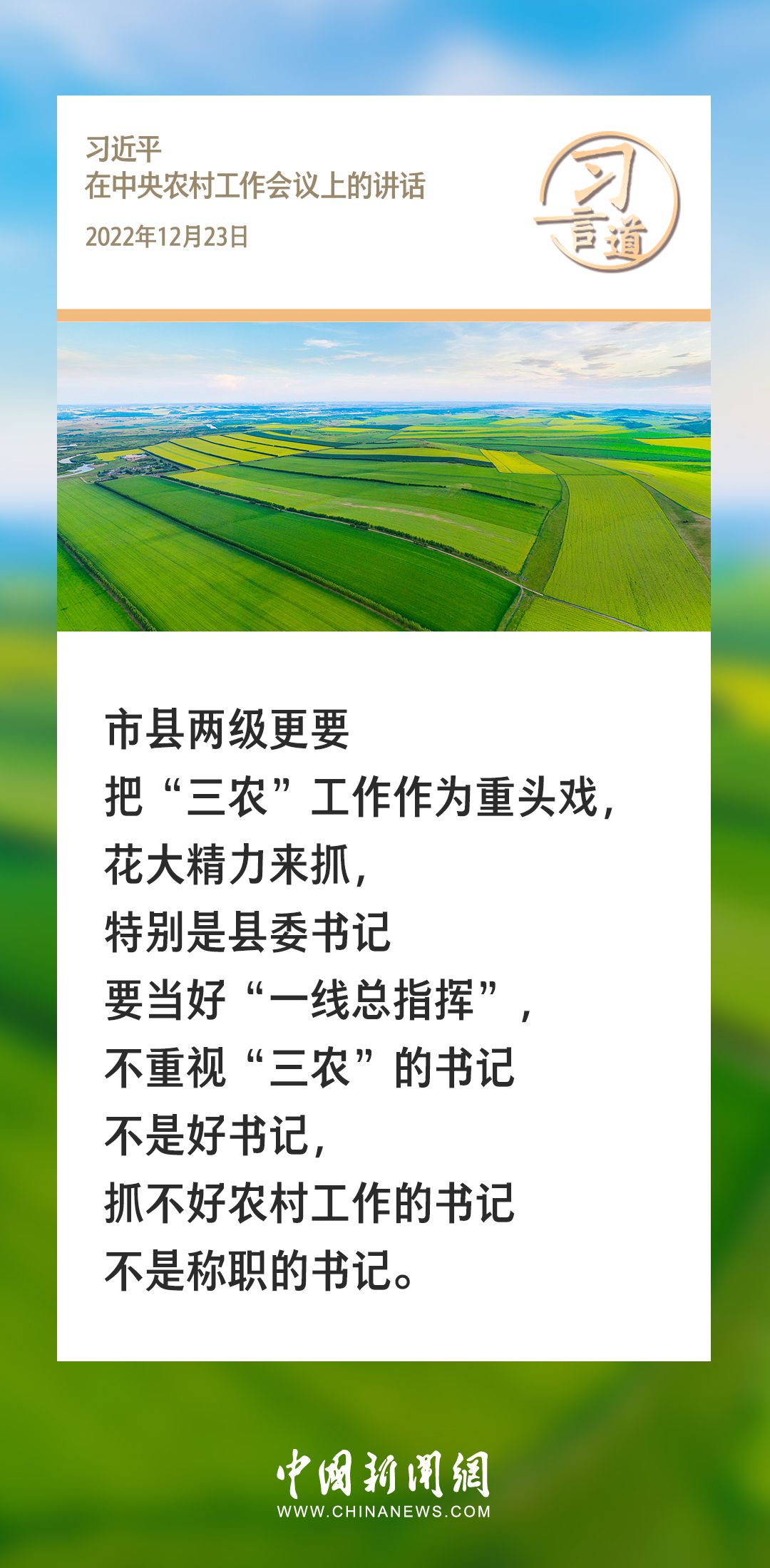农为邦本,本固邦宁。习近平总书记多次在不同场合就“三农”工作发表重要讲话、作出重要部署,始终坚持把解决好“三农”问题作为全党工作的重中之重。