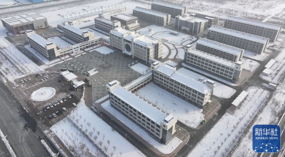 ↑这是由江苏援建的新疆生产建设兵团第七师胡杨河市第一中学(12月23日摄,无人机照片)。