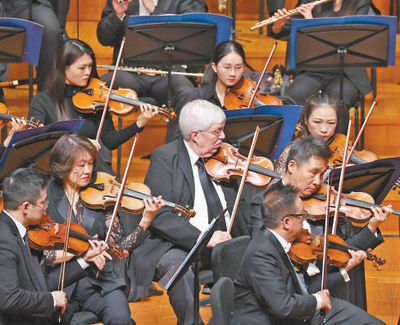 11月10日晚,在中国国家大剧院音乐厅举行的“跨越半个世纪的友谊”——纪念费城交响乐团访华50周年音乐会上,中外演奏家共同合作演出。