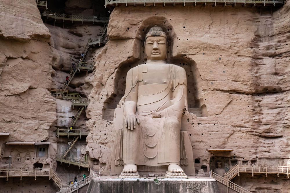 这是9月21日拍摄的炳灵寺石窟第171龛唐代石胎泥塑大佛。新华社记者郎兵兵 摄