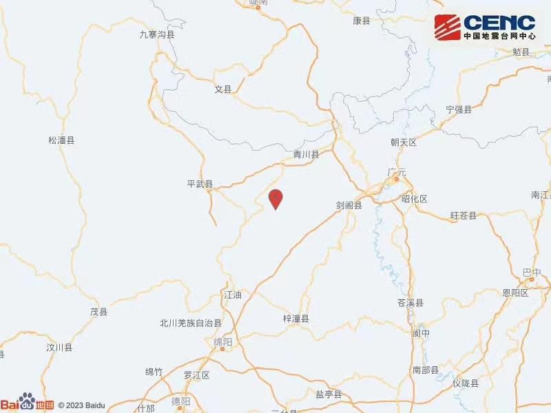 中国地震台网自动测定:12月27日04时22分,在四川绵阳市江油市附近(北纬32.29度,东经105.04度)发生3.0级左右地震。最终结果以正式速报为准。