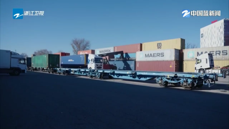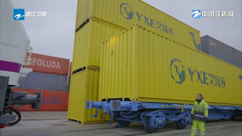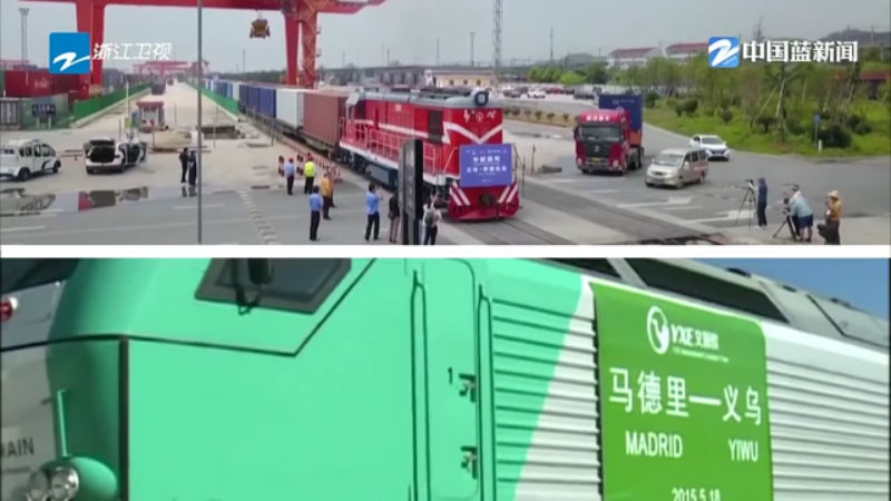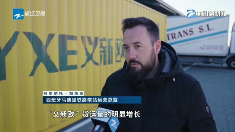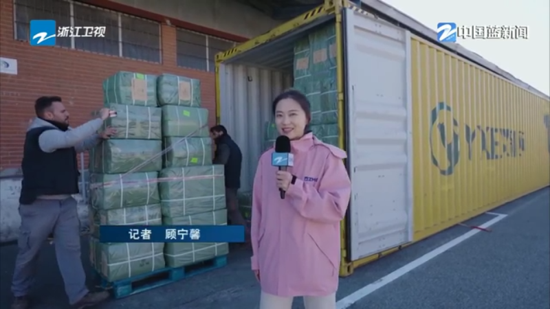记者 顾宁馨:在西班牙货运枢纽马德里南站,正在装卸的这个“义新欧”货柜载满了来自义乌的小商品,而在两天之后,这个货柜将装满欧洲的汽车零件和橄榄油,通过“义新欧”这条“金丝带”驶往中国,完成一场跨越两万里的双向奔赴。