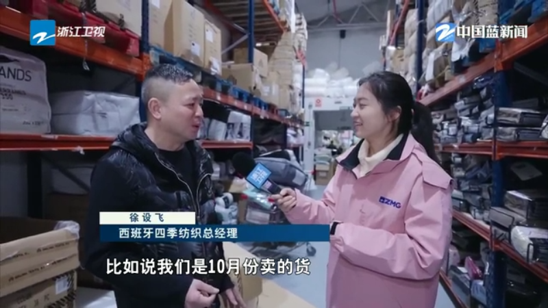 西班牙四季纺织总经理 徐设飞:(海运)最久的一次大概70多天柜子才到,我们10月份卖的货,如果说10月不到,11月才到货,我们这个货就要在仓库压一年,而且如果不流行了还卖不掉。