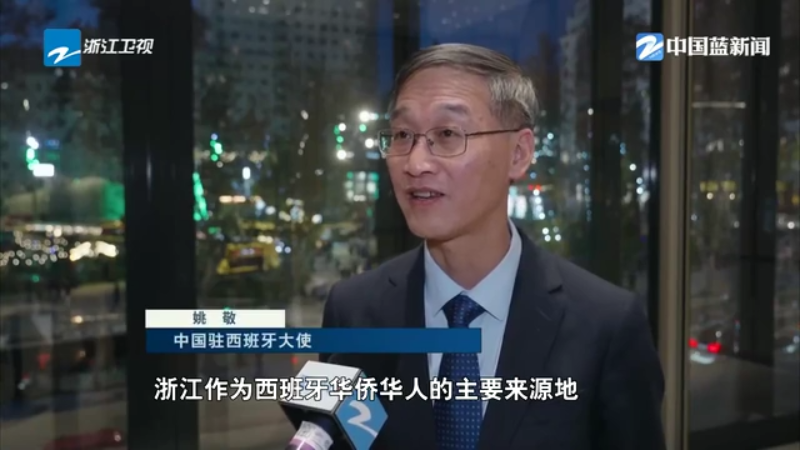 中国驻西班牙大使 姚敬:浙江作为有西班牙华侨华人的主要来源地,在这一方面浙江开展与西班牙合作有独特的资源,我们的双向投资肯定会增加,我们的双向合作、双向贸易也会进一步的增加。