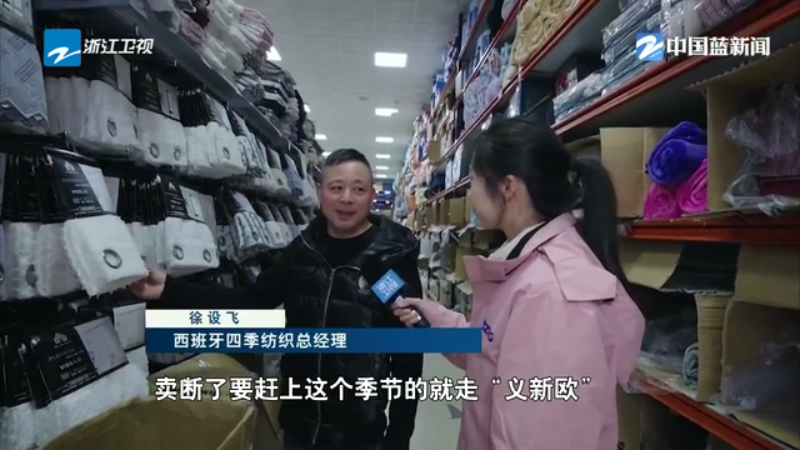 西班牙四季纺织总经理 徐设飞:速度快嘛,卖断了要赶上这个季节的就走“义新欧”,我们的货最快的可以21天从义乌出发到我们仓库。