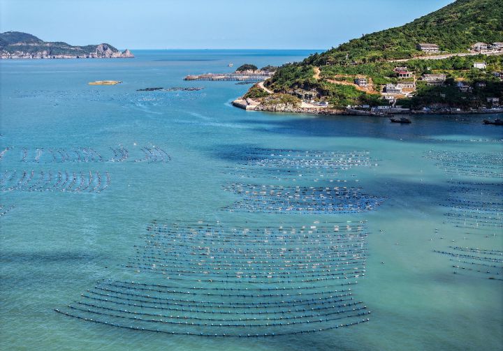 在台州市椒江区大陈岛周边海域,大片的贻贝养殖成为了一道风景。拍友 孙金标 摄