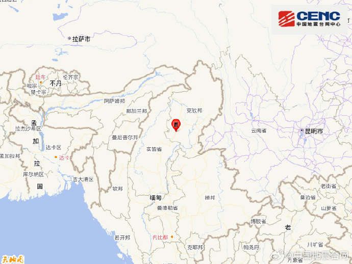 中国地震台网正式测定:12月30日00时31分在缅甸(北纬24.95度,东经96.45度)发生5.0级地震,震源深度10千米。