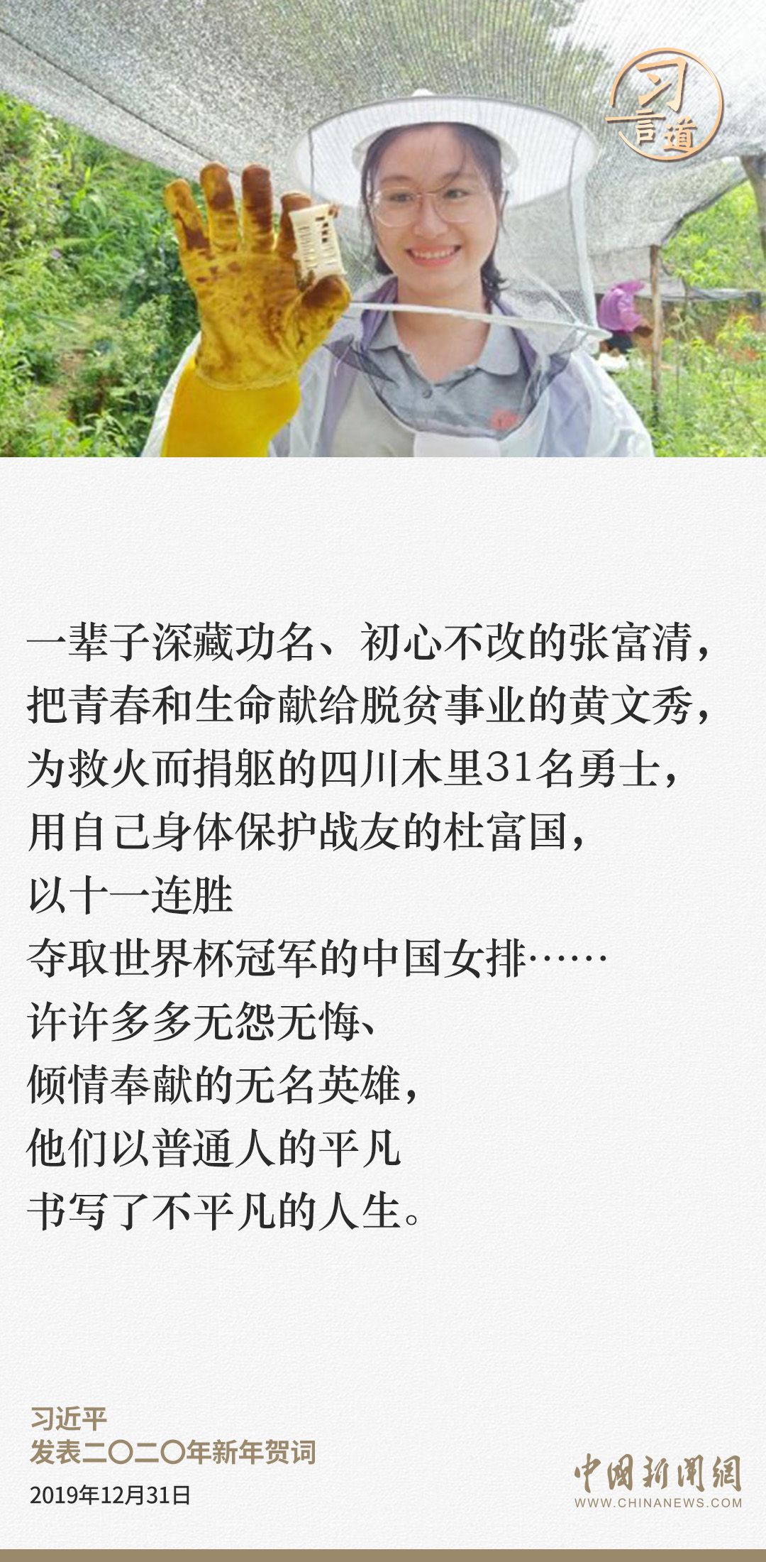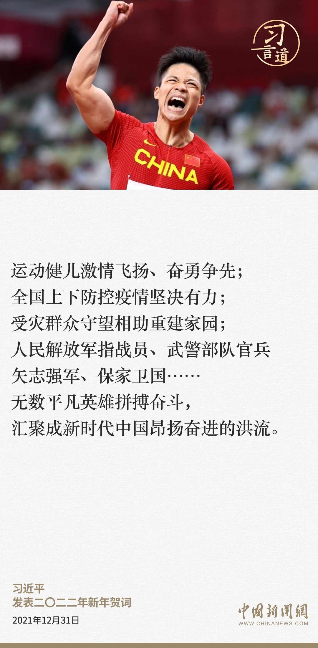 平凡铸就伟大,英雄来自人民。自2013年岁末起,国家主席习近平连续10年发表新年贺词。在新年贺词中,习近平总会为奋斗的中国人点赞、加油鼓劲,勉励大家“征途漫漫,惟有奋斗”。