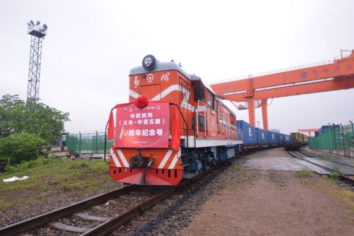“义新欧”班列(义乌-中亚五国)十周年纪念号发车。记者 杜羽丰 叶梦婷 摄