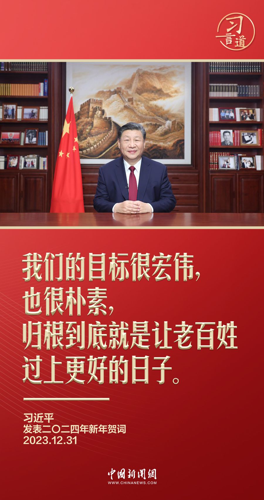 一元复始,岁律更新。12月31日晚,国家主席习近平的2024年新年贺词如约而至。在贺词中,习近平再次强调中国共产党孜孜以求的目标——“让老百姓过上更好的日子”。