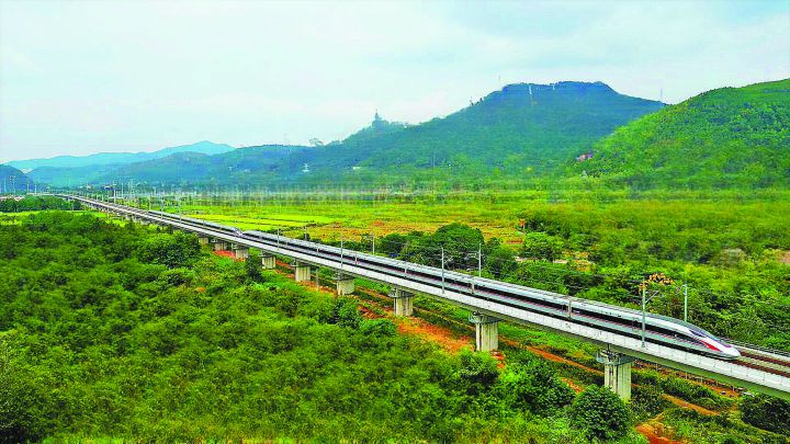 “绿巨人”复兴号动车组首次在甬金铁路全程试跑。 拍友 汪昊石 摄