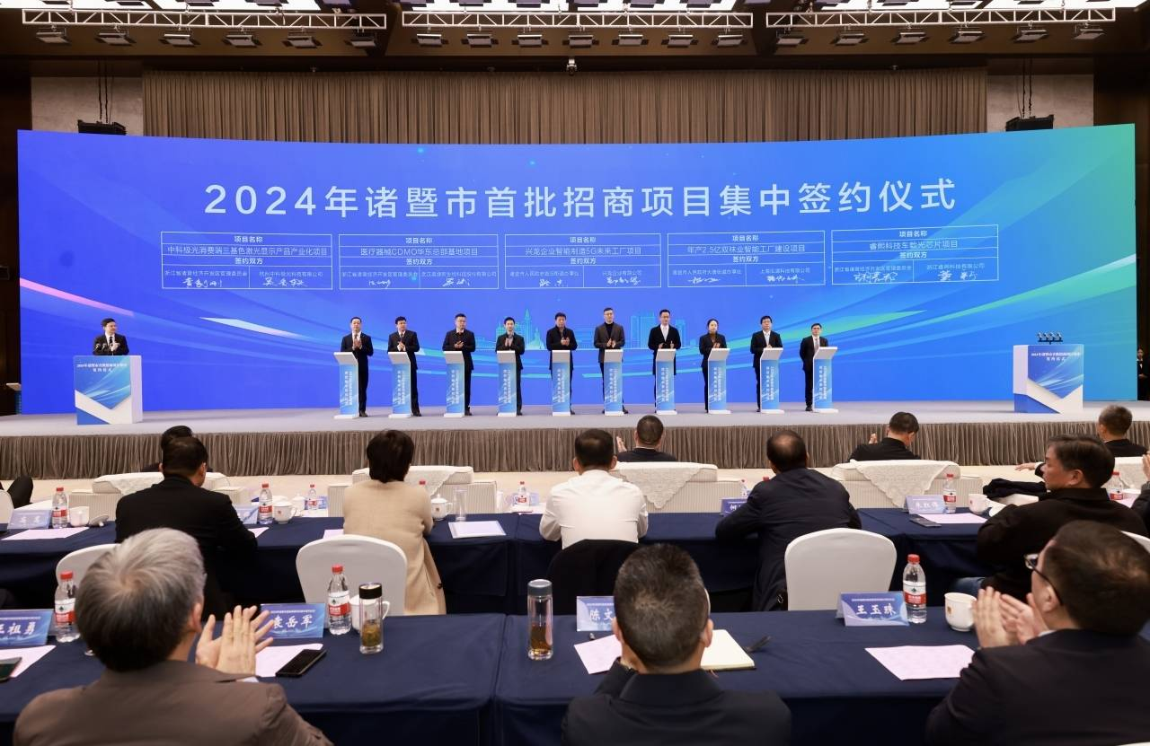 绍兴诸暨举行了2024年首批招商项目集中签约仪式,28个重大项目现场签约,涉及智能视觉、航空航天、新能源、生物医药等多个领域。诸暨市经济和信息化局局长袁新江表示,这些项目的开工为打造新质生产力先发地、高水平展现“枫桥经验”发源地靓丽风采注入了澎湃动力。