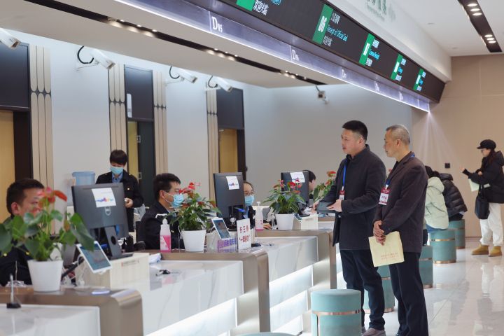 聚焦“国之大者”,杭州市滨江区纪委监委围绕产业合作园区建设服务,科创平台规范运行等强化政治监督,以有力监督护航长三角高质量一体化发展政策落地。图为滨江区纪检监察干部在长三角“一网通办”窗口检查相关政策落实情况。拍友 韩艳微 摄