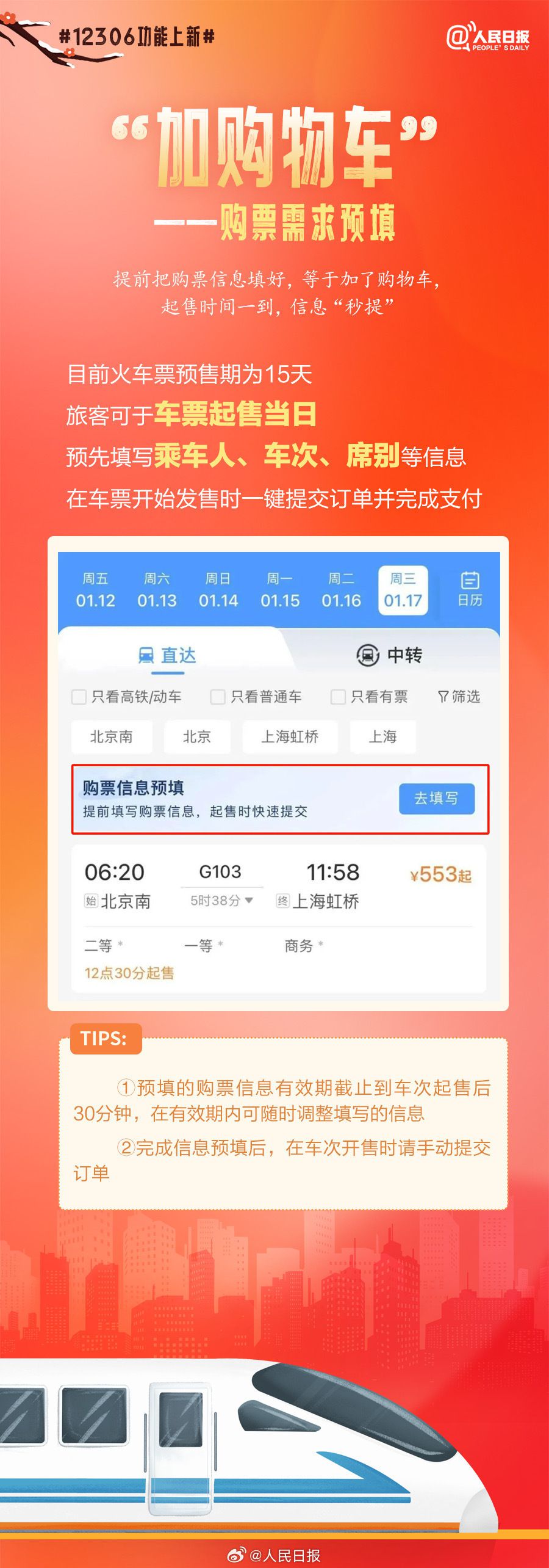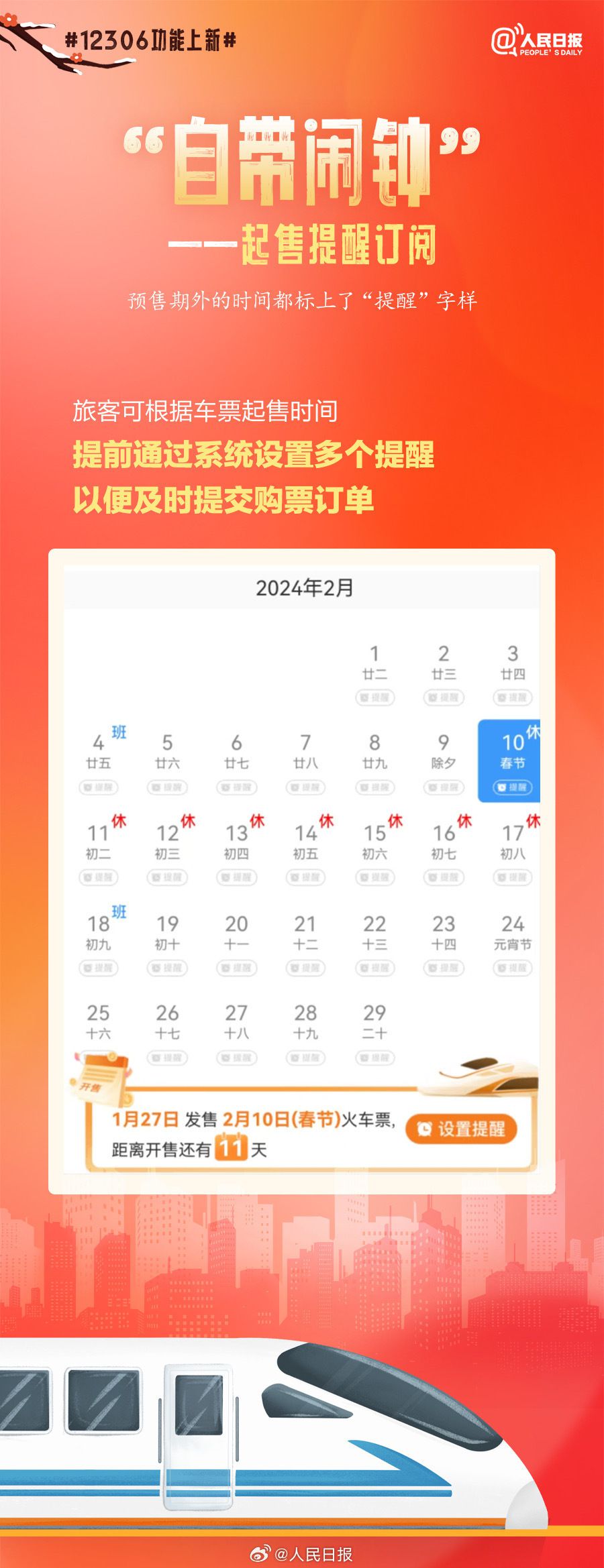 2月第一天车票将于明日开售。今年春运买火车票有啥不一样?购票需求预填,提前“加购物车”;起售提醒订阅,“自带闹钟”;候补购票功能升级,最多可选60个车次;新增学生务工人员专区预约购票……更多详戳↓↓收藏,周知!