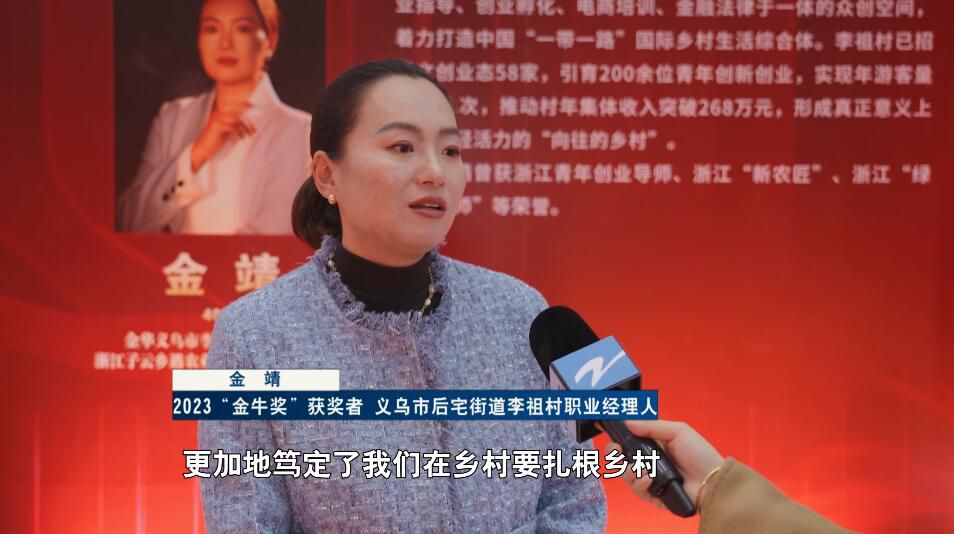 2023“金牛奖”获奖者、义乌市后宅街道李祖村职业经理人 金靖:是一份动力,更加地笃定了我们在乡村要扎根乡村,持续在乡村去耕耘的这样的一份决心。