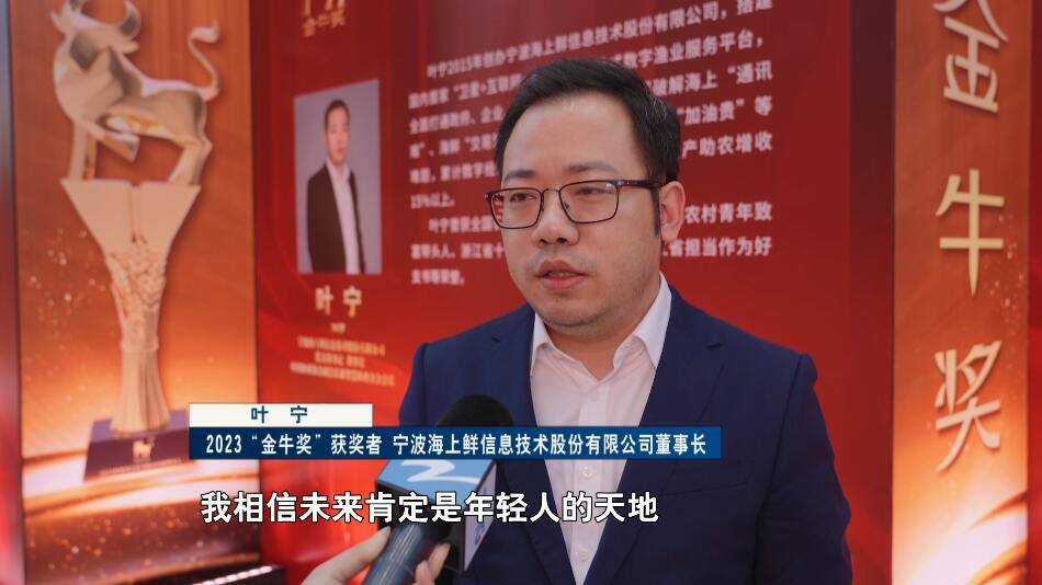 2023“金牛奖”获奖者、宁波海上鲜信息技术股份有限公司董事长 叶宁:三农领域,我相信未来肯定是年轻人的天地,我们现在全国投资运营建设五大海洋经济产业基地,线上线下融合发展,提高我们的核心竞争力。