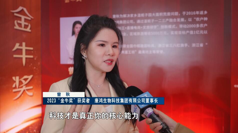 2023“金牛奖”获奖者、康鸿生物科技集团有限公司董事长 曾秋:科技才是你的核心能力,用科技去赋能于这个产业,把这个栀子花原材料的附加值增高,把它就垂直地去做深、做强、做精。