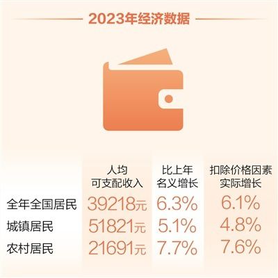 人民生活进一步改善。2023年,居民人均可支配收入同比实际增长6.1%,城乡居民收入稳定增长。电力、热力、燃气及水的生产和供应业投资增长23%,农业投资增长9.3%,快于全部投资,民生投入力度不断加大。