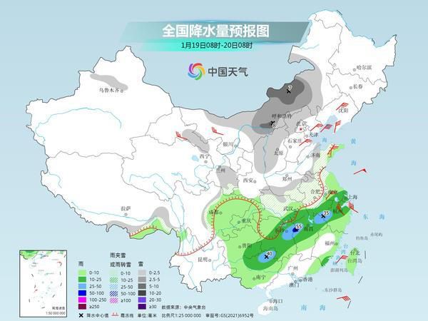 具体来看,今天,新疆北部、西北地区东部、内蒙古中西部、黄淮西部和南部、江淮北部、湖北西北部以及西藏东部等地部分地区有小到中雪或雨夹雪,局地有大雪。江淮南部、江汉东部、江南北部和西部、西南地区东南部等地部分地区有中到大雨,其中,湖北南部、湖南东北部和西部等地部分地区有暴雨。