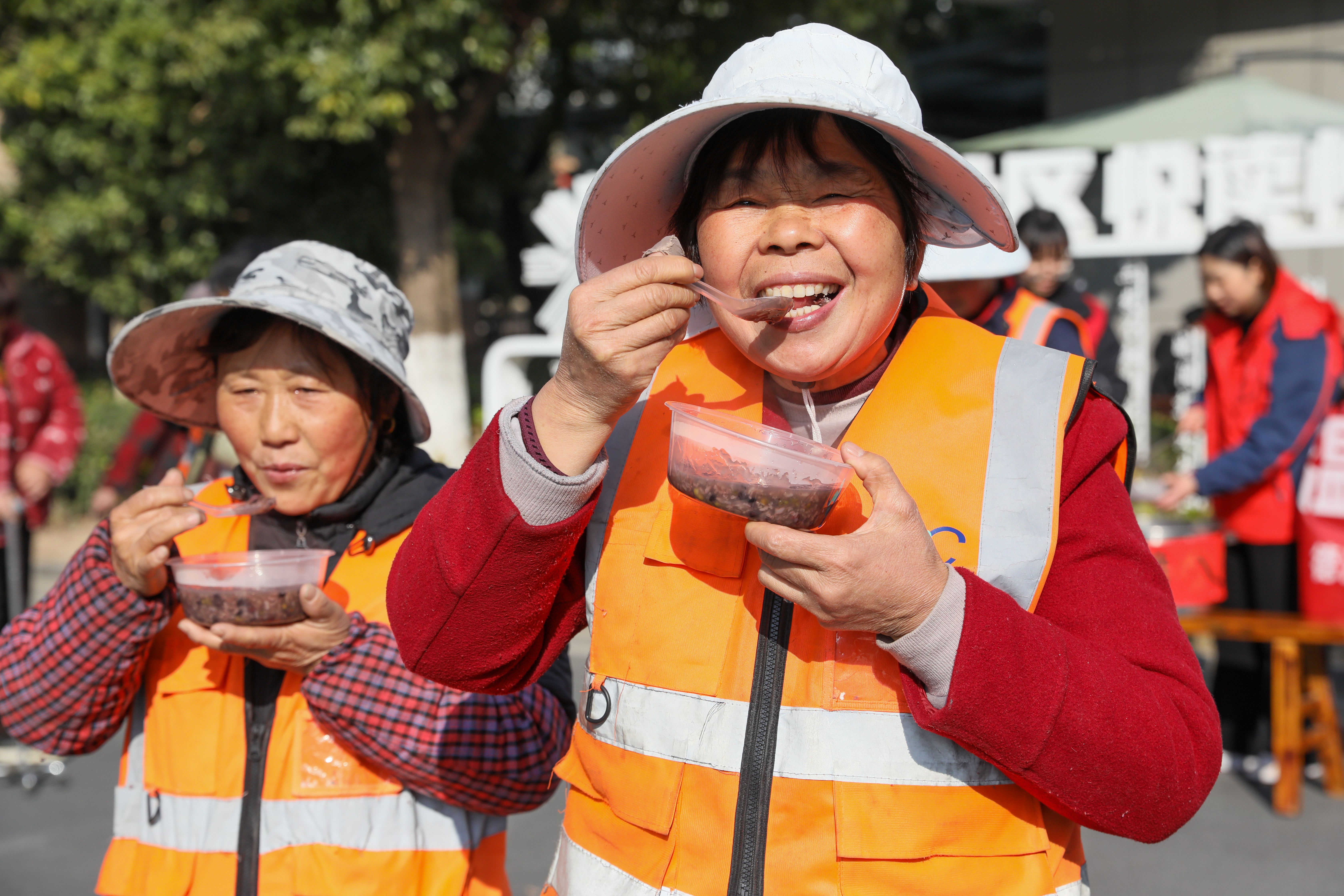 湖州德清县的善远公益服务中心也联合德清县民政局、美高电器开展了“善行阜溪浓情粥香温暖人心”活动,志愿者们将亲手熬制的腊八粥送给环卫工人,让他们在寒冷的天气里感受节日的温暖。