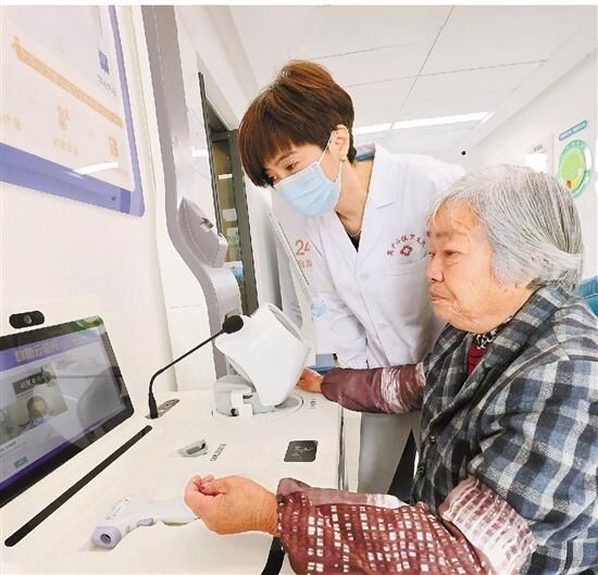 湖州市德清县莫干山镇五四村智慧健康站,村民通过“云诊室”进行慢性病复诊、健康监测和自助购药。 拍友 谢尚国 摄
