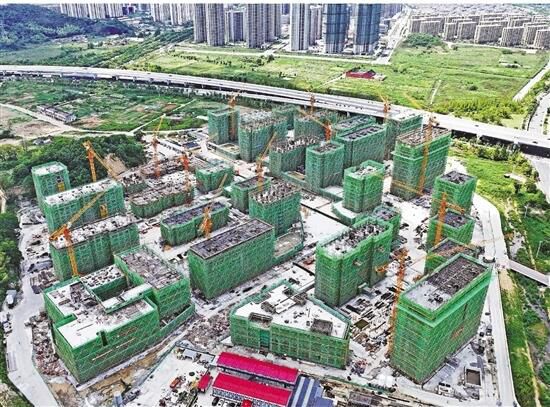 舟山市新城城北安置房项目工程工地塔吊林立。据了解,该项目总建筑面积28.6万平方米,将提供住宅总套数1643套。 拍友 陈永建 摄