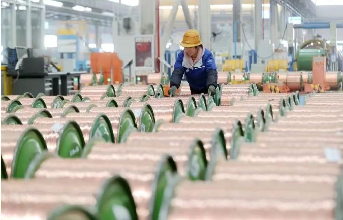 1月4日,在浙江省湖州市德清县乾元镇的浙江物产中大线缆有限公司生产车间,工人在赶制特种线缆订单产品 图源:新华社
