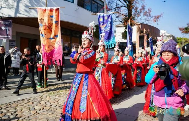 在全国“四季村晚”之冬季“村晚”主会场,丽水市莲都区原创的行进式演艺《画乡渡》 图源:“中国文化报”微信公众号