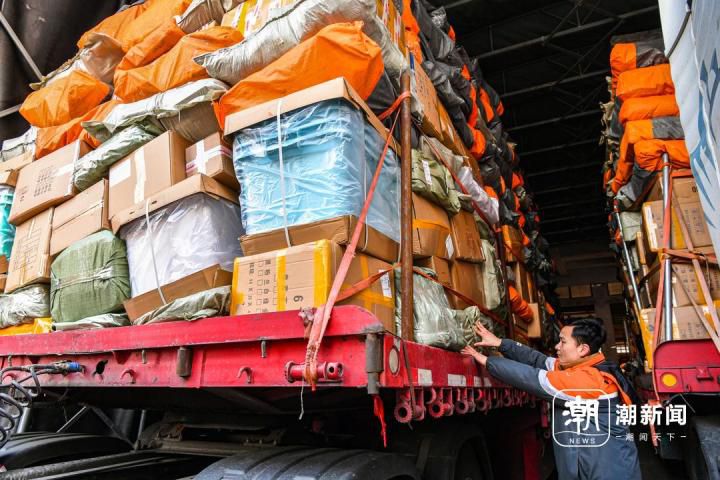 1月24日,在申通快递义乌转运中心的操作部内,工作人员正紧张有序地进行分拣、扫码、装车等工作,几十辆运输车整装待发,陆续将驶向全国各地。