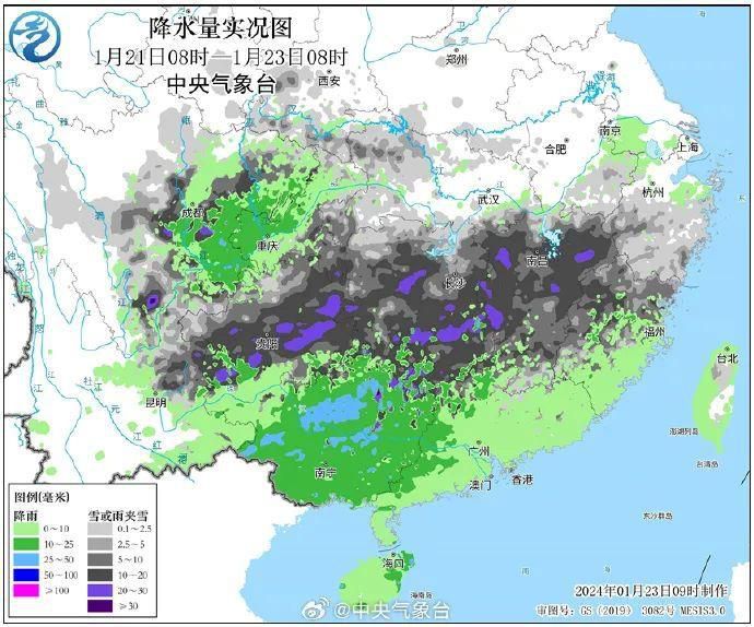 相比刚刚过去的南方雨雪过程,目前来看,此次过程降雪中心比上次偏北一些。1月21日至23日的雨雪过程,南方雪线压得比较靠南,江南大部以雪为主,湖南娄底、湘潭、衡阳、株洲等地局地出现大暴雪或特大暴雪。