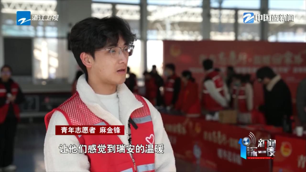旅客 胡志林:感觉有家的感觉,(在瑞安)打工这么久了,看到(青年志愿者)这么热情,对待回家的工人,感觉很贴心、很暖心。