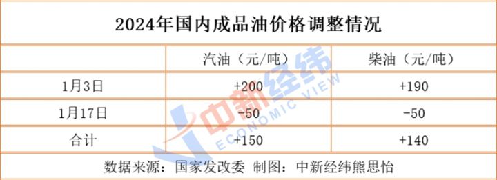2024年以来,国内成品油价已进行了两轮调整,呈现“一涨一跌”格局,汽、柴油每吨分别累计涨150元、140元。若本次上调兑现,国内成品油价将呈现“两涨一跌”格局。