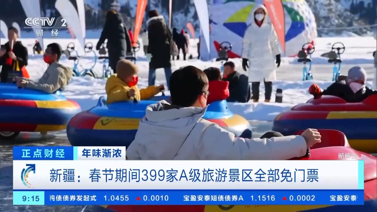 春节临近,各地旅游市场开始“热”起来,2月10日至24日,新疆399家A级旅游景区全部实行免门票惠民政策,并推出系列精品旅游线路,活跃春节旅游市场,丰富冰雪旅游体验。