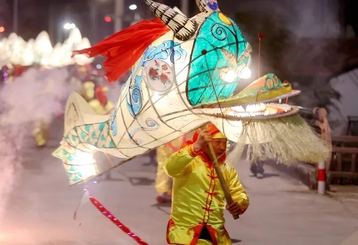 1月22日晚,浙江省湖州市德清县莫干山镇筏头村村民进行舞龙表演。新华社发(谢尚国 摄)