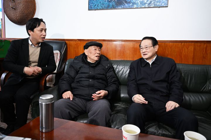 2月1日,省委书记易炼红来到遂昌县城,看望慰问94岁老党员周德焕,送去新春祝福。潮新闻记者 胡元勇 摄